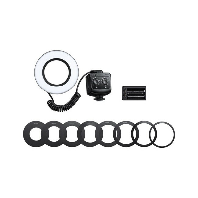 Ligar o RING72 é simples com duas opções adquiridas separadamente disponíveis: quatro baterias AA, alcalinas ou NiMH recarregáveis, ou uma bateria de íon de lítio destacável, tornando a configuração totalmente portátil, especialmente no campo. Além disso, ele é montado diretamente na maioria das lentes e vem com anéis adaptadores de 49, 52, 55, 62, 67, 72 e 77 mm.